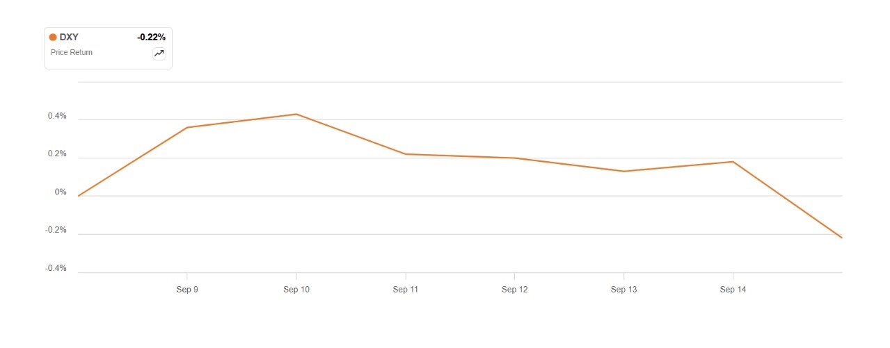 The U.S. Dollar Index (DXY), which measures the value of the dollar against a basket of six foreign currencies, declined 0.22% over the last week.