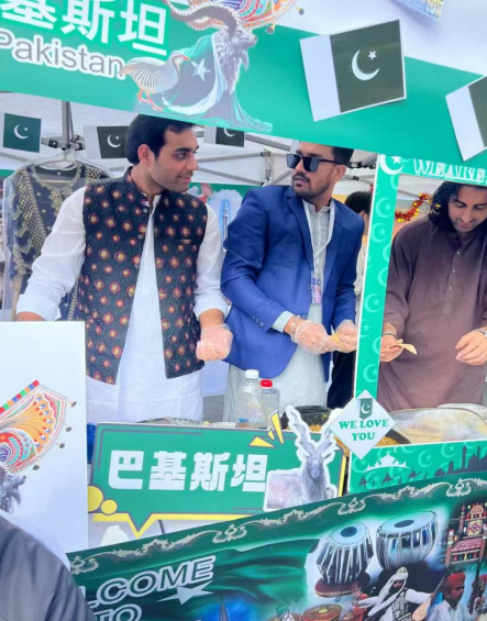 Muhammad Yasir Baloch (left) at a culture festival at Chengdu university (Photo provided to CEN)