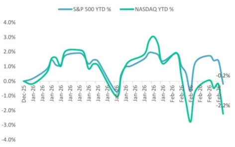 Investor anxiety over AI disruption has emerged as an immediate factor. In the U.S., concerns that generative and agentic AI could erode profits in sectors such as software, legal services, real estate, and insurance have weighed on sentiment. Bank of America notes that the market capitalisation of the U.S. software industry has fallen by more than $2trn in just five months. Statistics released by the U.S. Department of Labor this week showed an unexpected decline of 92,000 in non-farm payrolls in February, intensifying fears that AI may begin to disrupt labour markets sooner than anticipated.