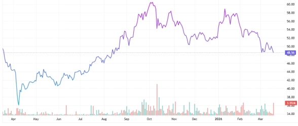 Invesco China Technology ETF performance in the 12 months to March 19, 2026. Graphics from TradingView.