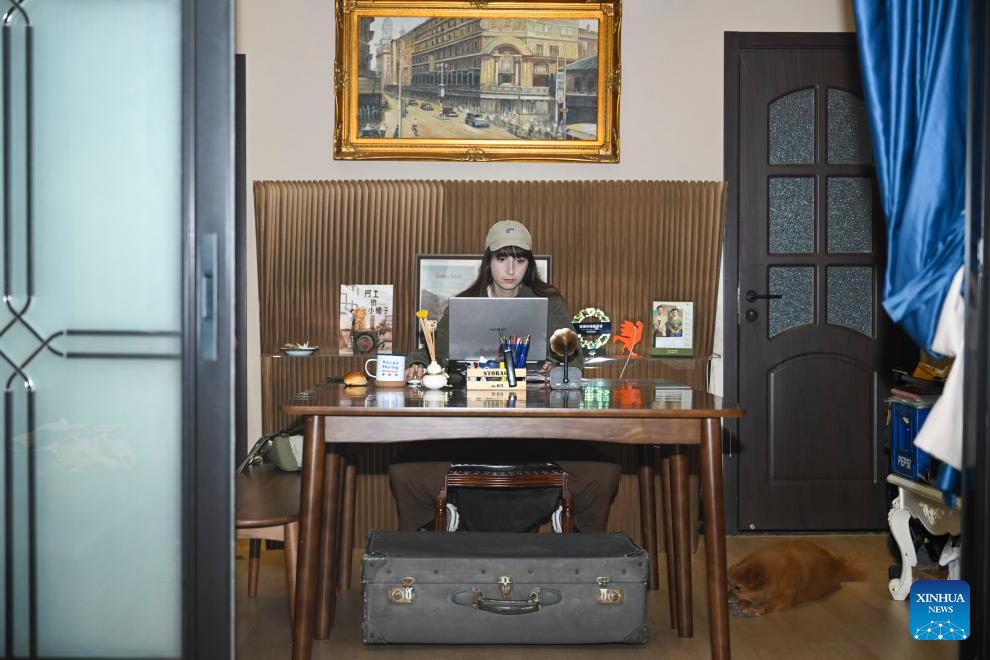 Clarisse Le Guernic edits videos in her workshop in east China's Shanghai, Oct. 21, 2025.(Xinhua/Chen Haoming)