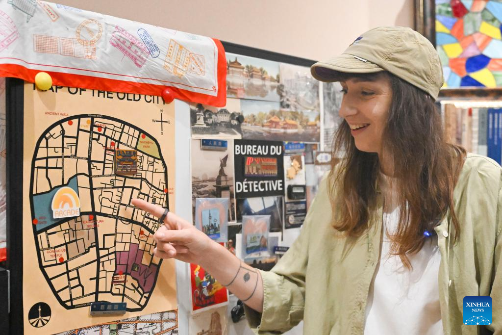 Clarisse Le Guernic introduces the walk route that she explored at her workshop in east China's Shanghai, Sept. 22, 2025.(Xinhua/Chen Haoming)