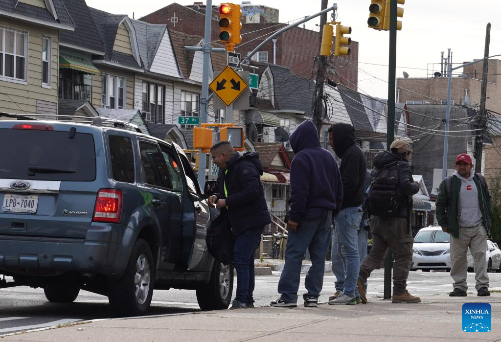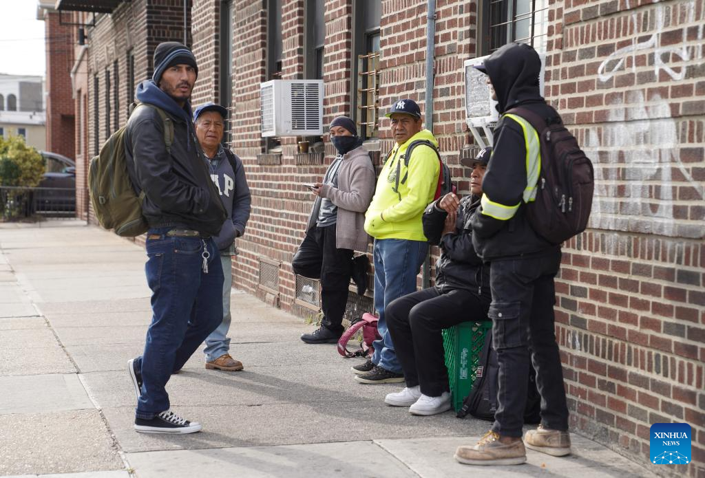 Day laborers wait for employers on a street in New York, the United States, on Nov. 7, 2025. Due to U.S. federal government shutdown, scheduled release of non-farm payroll data for October was delayed again.