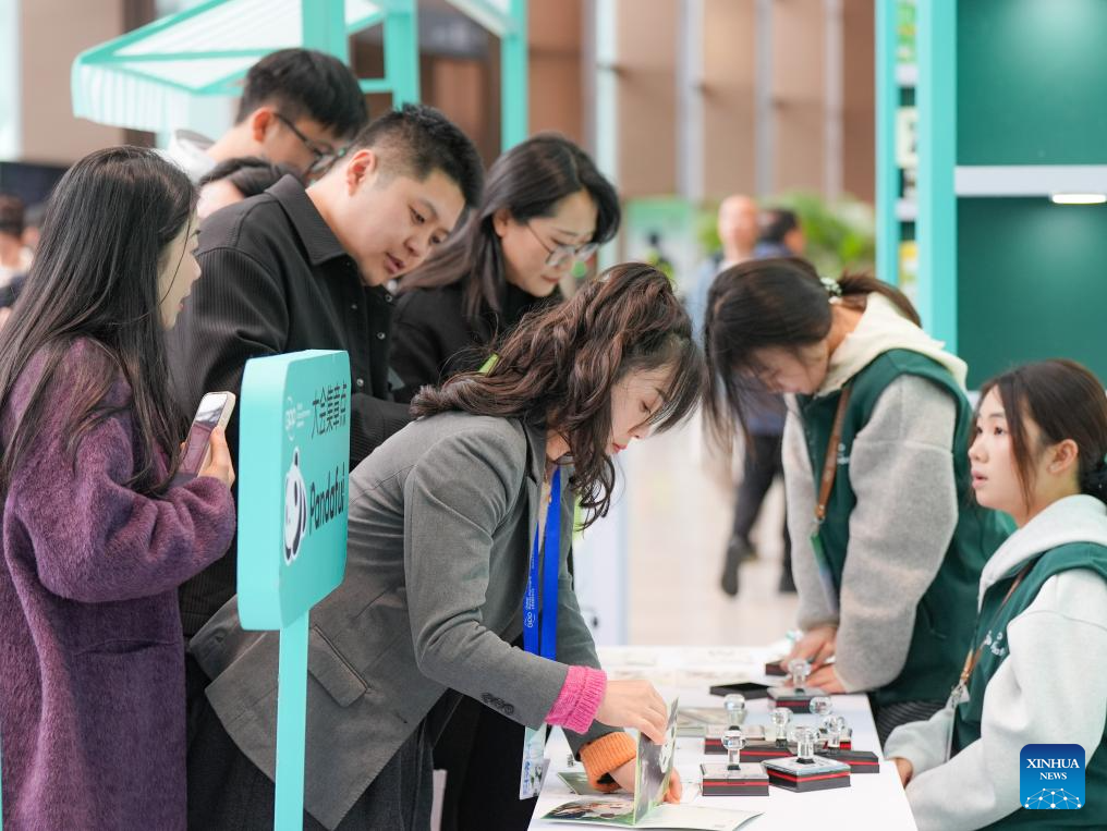 Guests visit the Ya'an City exhibition area of the Global Panda Partners 2025 conference in Chengdu, southwest China's Sichuan Province, Nov. 21, 2025.