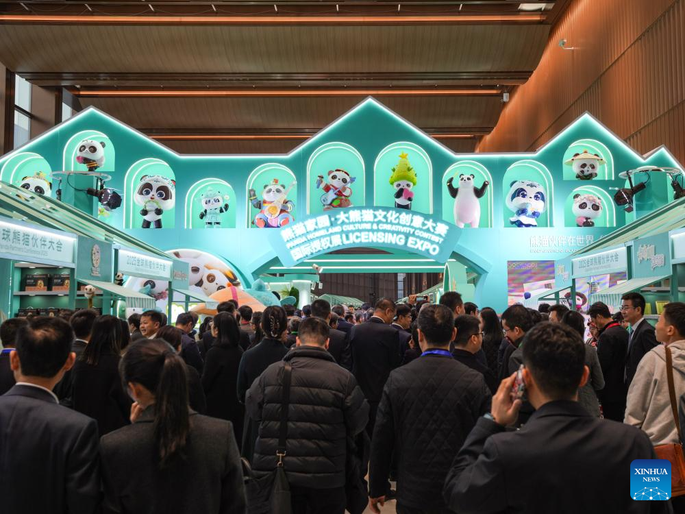 People visit an expo of panda-themed cultural and creative products in Chengdu, southwest China's Sichuan Province, Nov. 21, 2025.