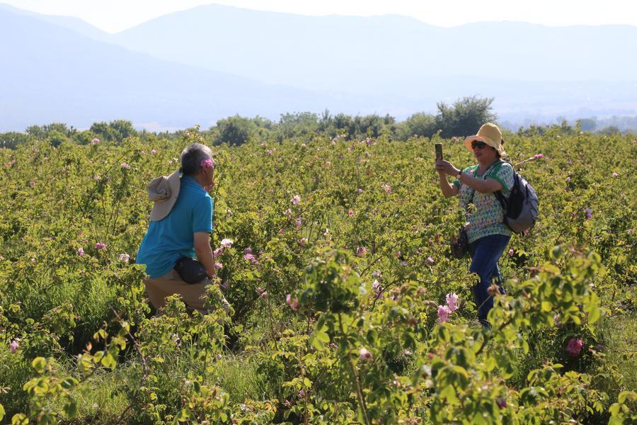 Visitors take photos during the rose picking ceremony in Kazanlak, Bulgaria, June 8, 2025. The 2025 Rose Festival was held in Kazanlak, Bulgaria. The festival has been organized since 1903. (Xinhua/Lin Hao)