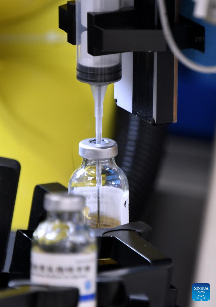 An automatic intelligent intravenous drug compounding robot system works at the Tongzhou branch of Beijing Anzhen Hospital in Beijing, capital of China, Feb. 3, 2026. Beijing Anzhen Hospital, designated by the Beijing municipal government as the city's first demonstration unit for "robots plus medical" applications, currently has 25 types of medical robots undergoing clinical trials.