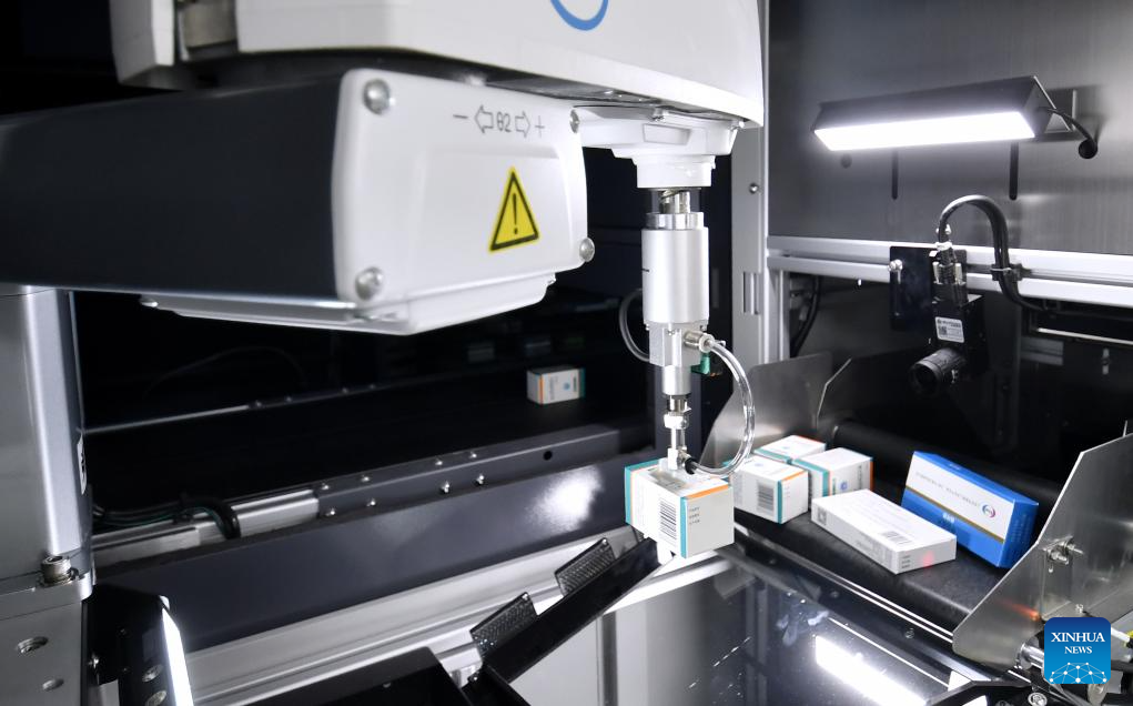 This photo shows the smart pharmacy at the Tongzhou branch of Beijing Anzhen Hospital in Beijing, capital of China, Feb. 3, 2026. Beijing Anzhen Hospital, designated by the Beijing municipal government as the city's first demonstration unit for "robots plus medical" applications, currently has 25 types of medical robots undergoing clinical trials.