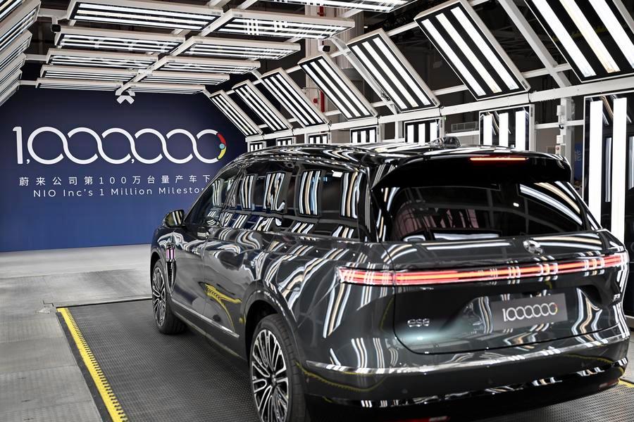 This photo taken on Jan. 6, 2026 shows NIO's 1 millionth vehicle at the NIO Second Advanced Manufacturing Base in Hefei, east China's Anhui Province. (Xinhua/Huang Bohan)