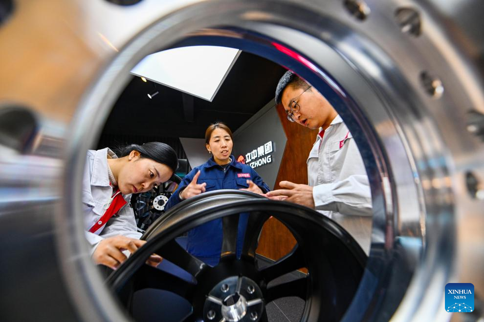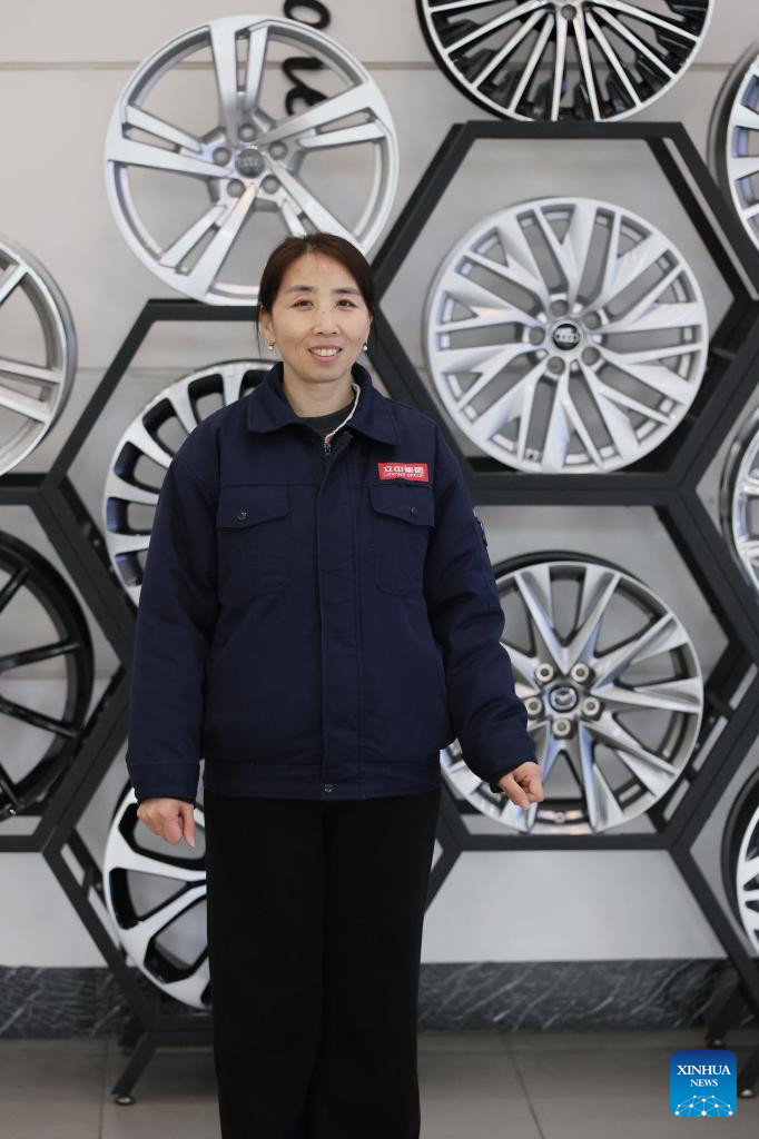 Guo Hongjing works at Tianjin Lizhong Wheel Co., Ltd. in north China's Tianjin, Feb. 25, 2026. (Xinhua/Li Ran)